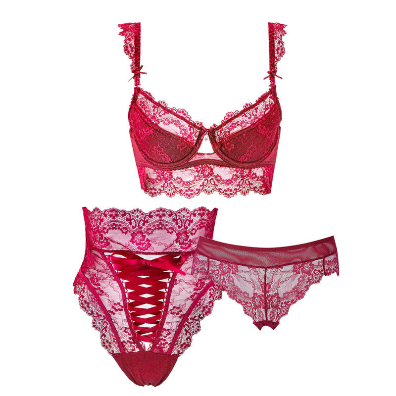 Seksualus ir žavus trijų dalių liemenėlės rinkinys, pagamintas iš modalinio audinio, sukurtas užtikrinti tiek komfortą, tiek palaikymą. Su reguliuojamomis petnešomis, nėrinių kraštais ir vidutinio dydžio puodeliais, kad suteiktų dailų pritaikymą.